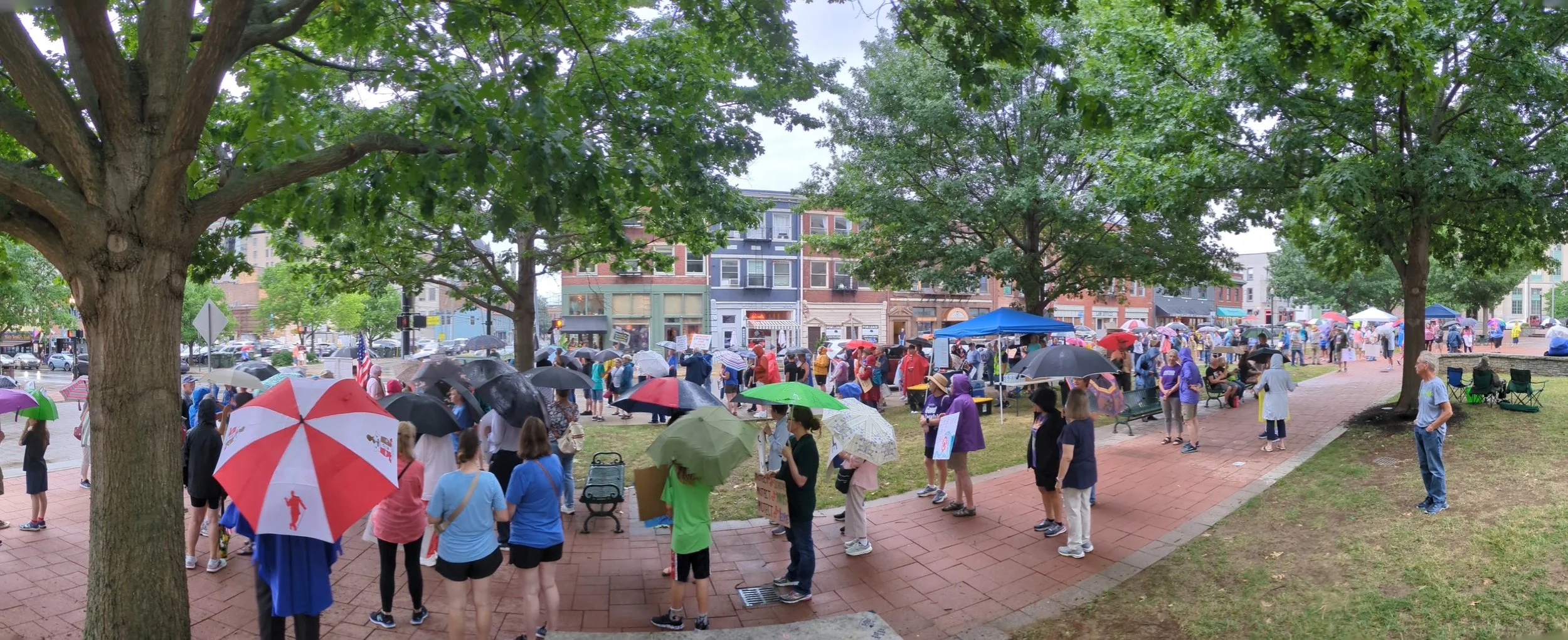 The crowd braved the rain to turn out for the Good Trouble Lives On rally in honor of the late John Lewis on July 17. LWVKY co-sponsored the rally, along with LWV of Lexington, Gathering for Democracy, NAACP of Lexington, Kentuckians for the Commonwealth, Neighbors Immigration, Peaceful Bluegrass Resistance, the AFT, 50501, and the Bluegrass Activist Alliance.